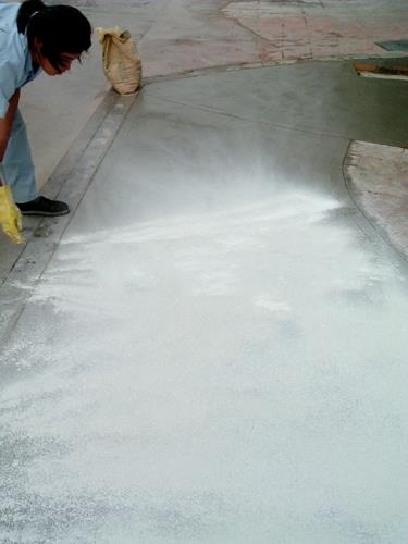 | (步驟一 混凝土收光) | (步驟二 撒壓膜材料) |