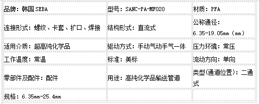閥門身體部分材質(zhì)為高純PFA,與介質(zhì)接觸到的部分全部為PFA材質(zhì).未和介質(zhì)接觸到的部分:PFA,PVDF,18-8 SS等