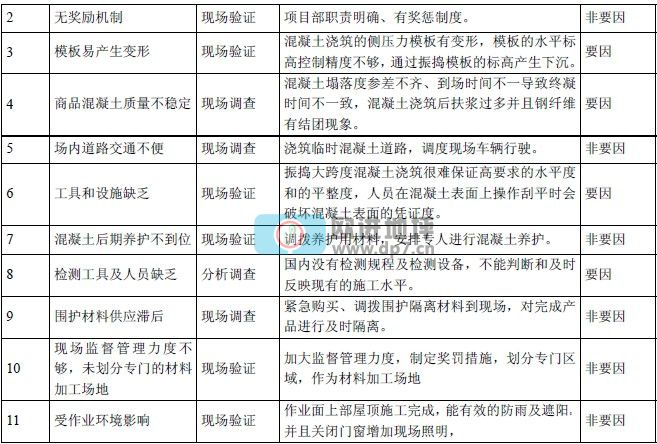 分別統(tǒng)計(jì)出:地坪的平整度和水平度、外觀質(zhì)量、表面的完整度是影響質(zhì)量的關(guān)鍵因素;