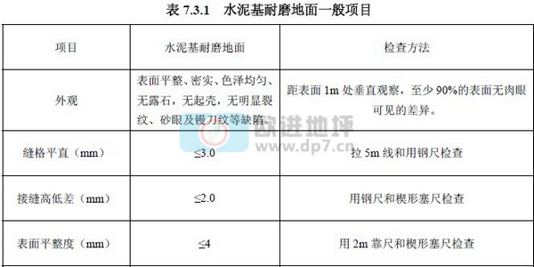 水泥基耐磨地面一般項目的驗收應(yīng)符合表 7.3.1 的規(guī)定。